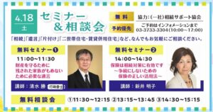 2026年4月18日「相続」「遺言」セミナー&相談会を